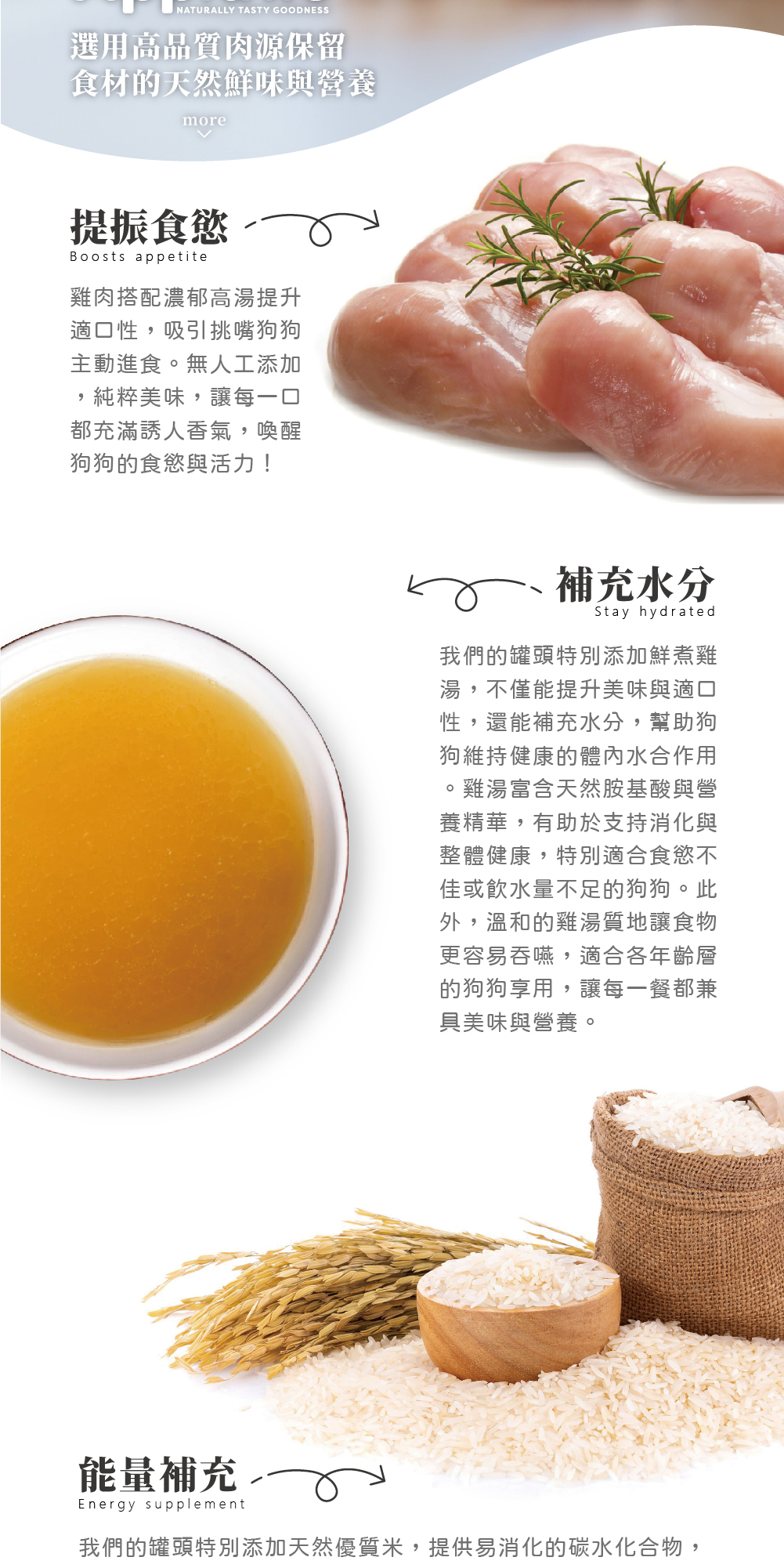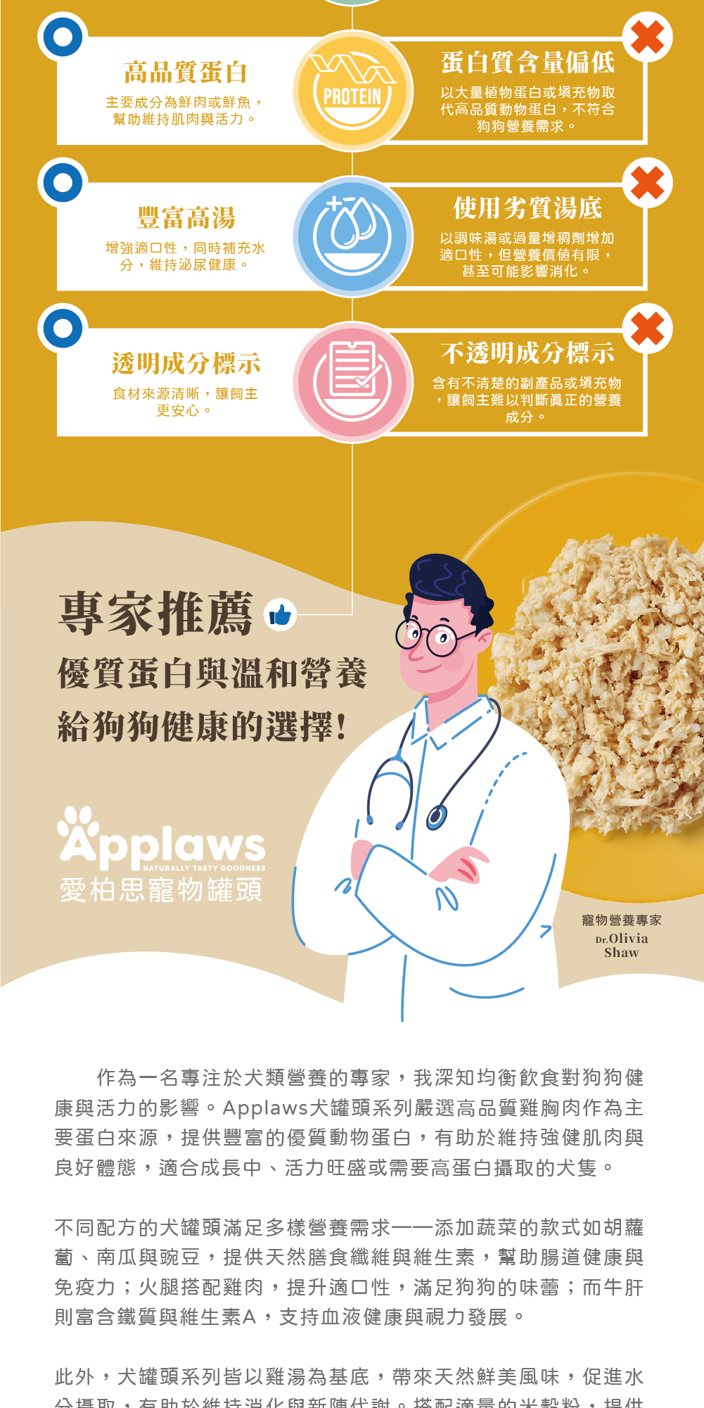 ■ 愛柏思全天然犬罐所用之食材為特選有機飼料飼養之雞隻,均不施打抗生素及賀爾蒙以及天然海域中最上等之魚肉。